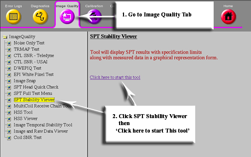 - From Common Service Desktop (CSD) select Image quality, then SPT Stability