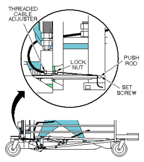 - Adjust cable so that when push rod is pushed in 3/8 inch (9.5