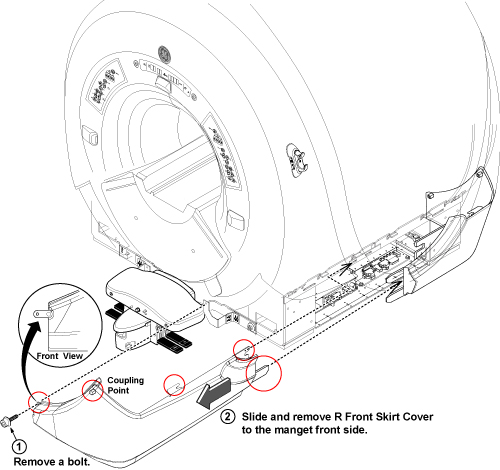 - Slide and remove front right skirt cover to the magnet front side.note:
