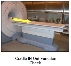- Press Cradle in button on the Gantry, ensure that the cradle move inside the Bore.