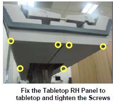 - Fix back the marked Screws of the Tabletop Panel LH and RH assembly.