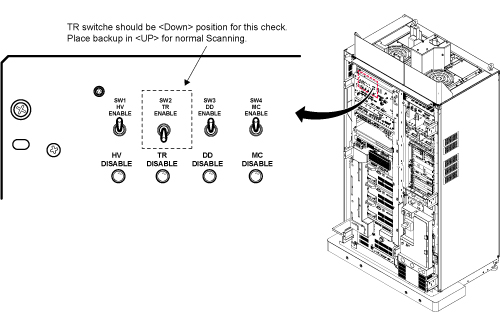 - Inhibit TR faults. Disable the Driver Module in the System Cabinet,Figure 1. Move switch 2 to the TR Disable position.