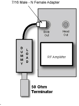 - Remove the Body RF cable from J4. Connect the RF dummy load