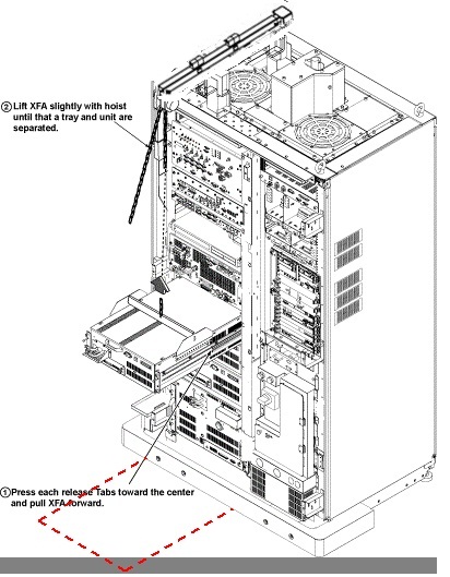 - Withdraw XFA from the chassis until hole of hoist bracket can be aligned to the hoist bar.