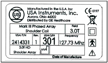 To identify the HD 3.0T Shoulder Coil, refer to the coil label Figure 1.