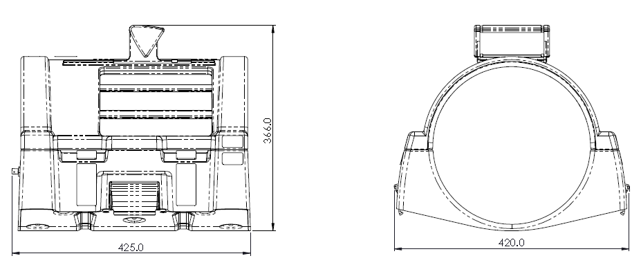 425 mm (L) x 420 mm (W) x 366 mm (H) (16.7 x 16.5 x 14.4 inches)