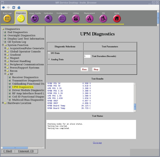 Diagnostics > System Function > RF > UPM Diagnostics