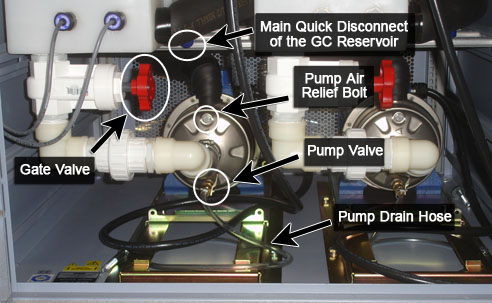 If replacing the pump, close the gate valve below the GC or PE reservoir.