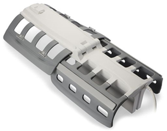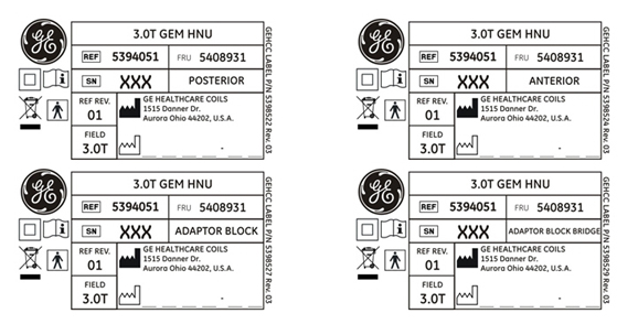 The GEM HNU coil consists of four parts: Anterior (Face Bill), Posterior, Adaptor Block and Adaptor Block (AB) Bridge. To identify the HNU coil parts, see the illustrations below.