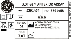 This document describes the 3.0T GEM (Geometry Embracing Method) high-density coils made by General Electric Healthcare, which are receive-only coils. The 3.0T GEM catalog number is M7000AM. The coils included for this catalog number are: