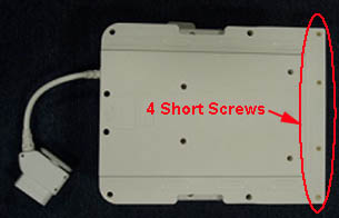 Remove the 16 screws from the bottom cover of the posterior section, and segregate the four shorter screws from the other screws.