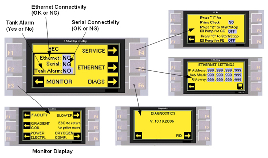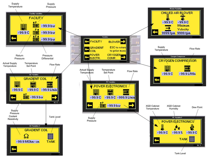 The HEC provides the sensor information, which is monitored by the MR host computer at the addresses shown below. Any deviation of temperature or pressure outside of limits is reported to the system message log.