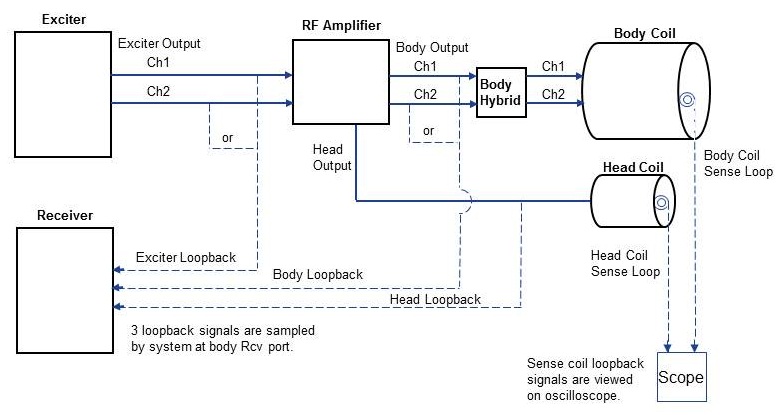 The RFA Loopback Test can be used to troubleshoot phase and magnitude differences, phase and magnitude stability issues, and fidelity issues that can occur in the dual drive RF output. The FE can select the desired RF pulse type, as shown Table 1, to check for magnitude and phase differences between the channels and individual channel stability or linearity issues.