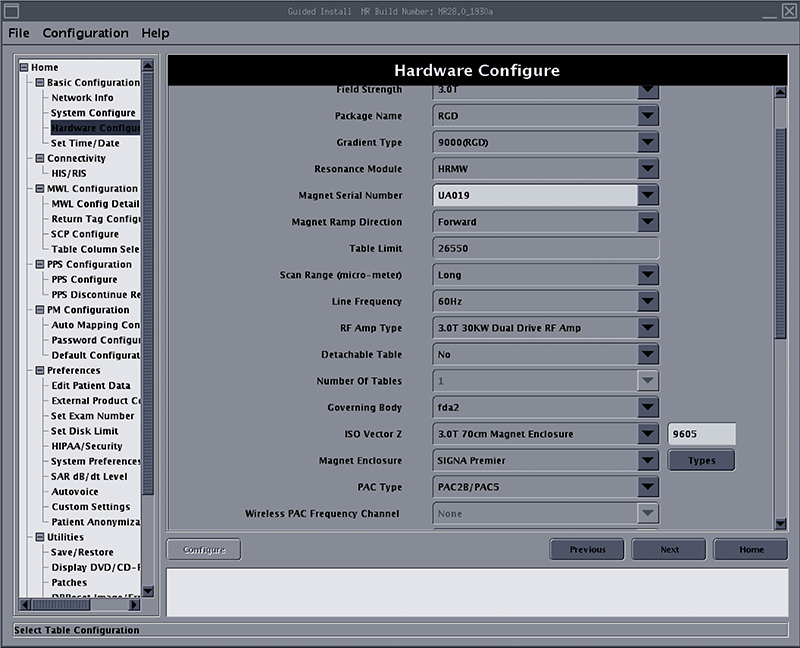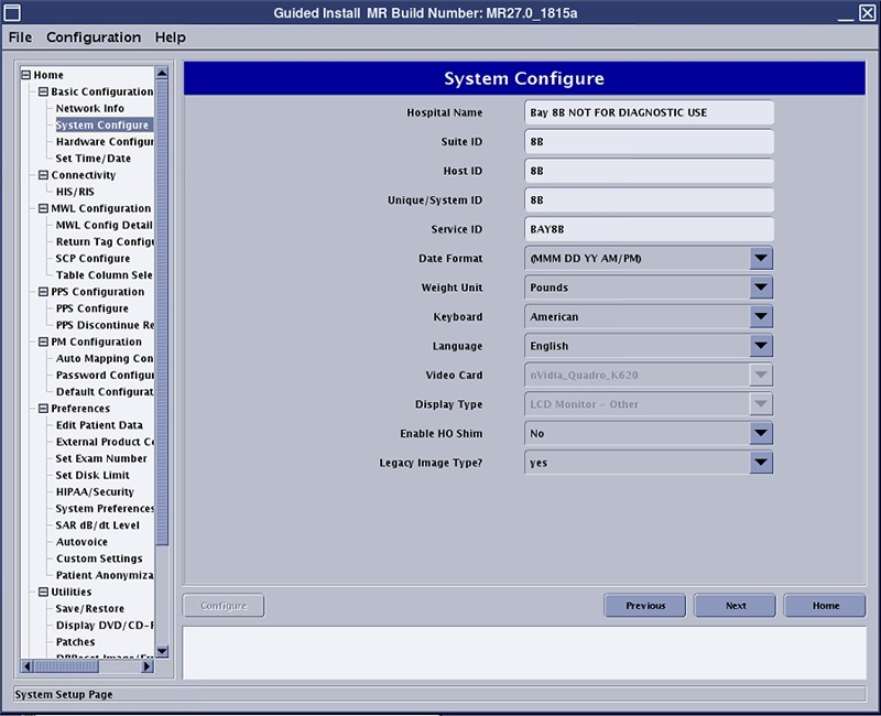 The MR System is configured for the various hardware interactions within the system using the Guided Install System Configure and Hardware Configure tabs.