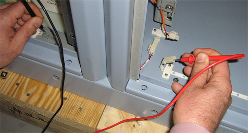 - Use a digital multimeter to measure resistance from the terminal block contact to the corresponding connector conductor. You may need to swap measurement points at one end in order to locate the correct line.