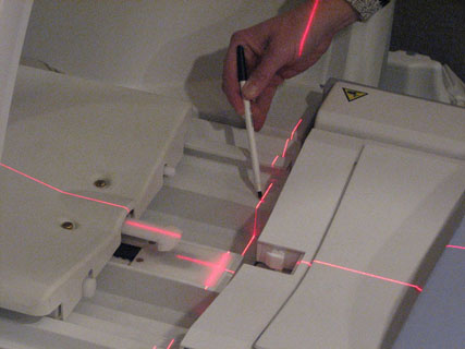 The laser light(s), mounted on the front face of the magnet bore, are pre-adjusted at the factory and do not normally require realignment after the initial installation alignment procedures are completed.