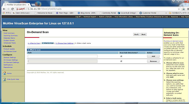 /opt/NAI/LinuxShield/bin/nails passwdto configure password for nails account. - Configure VSEL using browser at https://<system IP address>:55443/.
