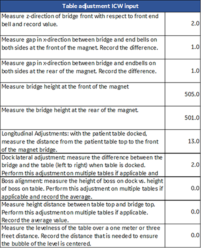 The proper alignment of the entire patient handling system is important for good image quality output from the GE MR scanners.