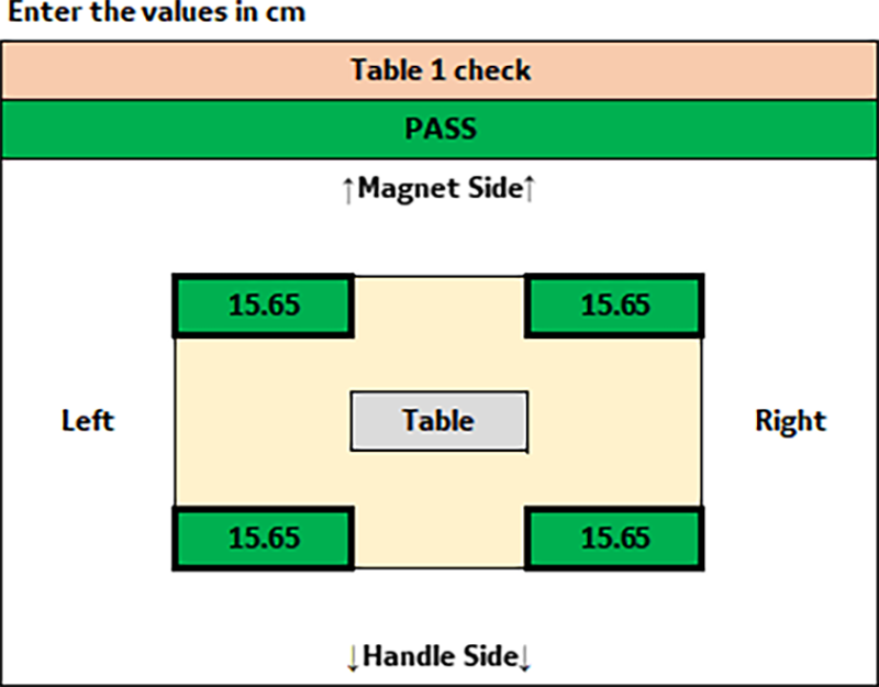 If the check fails/adjustment is required, the FE can raise a separate SR and perform the adjustment during a different visit or during the same visit if there is adequate time. The procedure for making the adjustments is Adjusting the patient handling system with the laser leveling tool.