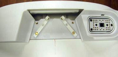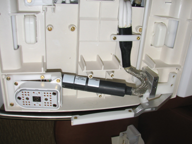 - Each P-port cover (front and rear) is attached by a rubber tether. Remove the P-port cover by gently tugging its tether to pull it out.