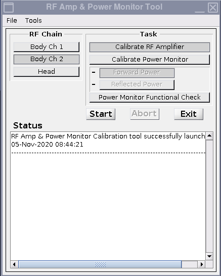 Figure 3. RF Amp and Power Monitor (RAP) Tool functional check selections for body channel 2