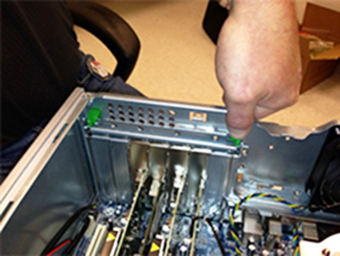 - Install the replacement graphics card into the open slot, and restore the locking bar.