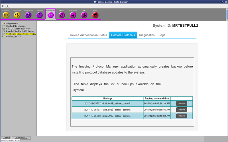 There are 2 parts to the service documentation for this feature. One deals with the Imaging Protocol Manager application which resides on the cloud and the other part which deals with configuring the MR System to connect to this application. This manual covers the procedures needed to connect the MR System to the IPM application on the cloud. For any details regarding the IPM application on the cloud, look for Imaging Protocol Manager Service documentation on the SIMS Content Viewer.