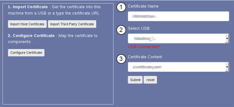 The message Certificate Saved Successfully displays below the Submit button that confirms the certificate was successfully imported.Figure 5. Import confirmation window