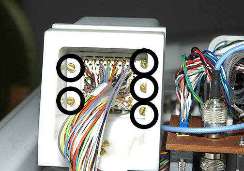 As viewed from the front of the magnet, the P1 coil connectors track is on the left side of the rear pedestal and is designated by three FRUs noted in Replacement Parts. (See Table 5 for all RRx receive chain cable types.) The A-port and other associated cable tracks are located on the right side of the rear pedestal (see Table 6 for all cable types).