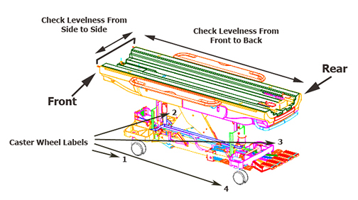 During installation, this procedure describes how to check the caster height (factory default) settings. If the patient table requires adjustment, continue to Leveling the patient table.