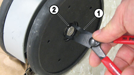 - Attach the collar to the new caster, reusing the caster linkage pin, collar, and collar bolt from the old caster. (Refer to your note regarding the correct orientation of the collar on the caster shaft.)