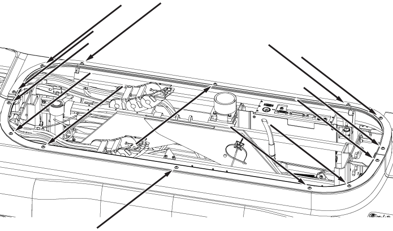 - Remove the screws securing the bellows cover to the table base covers.