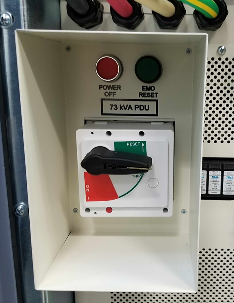 To remove LOTO for the PEN cabinet: At the PDU front panel, flip the PDM-RF (or PEN Cabinet) circuit breaker to the ON (UP) position.