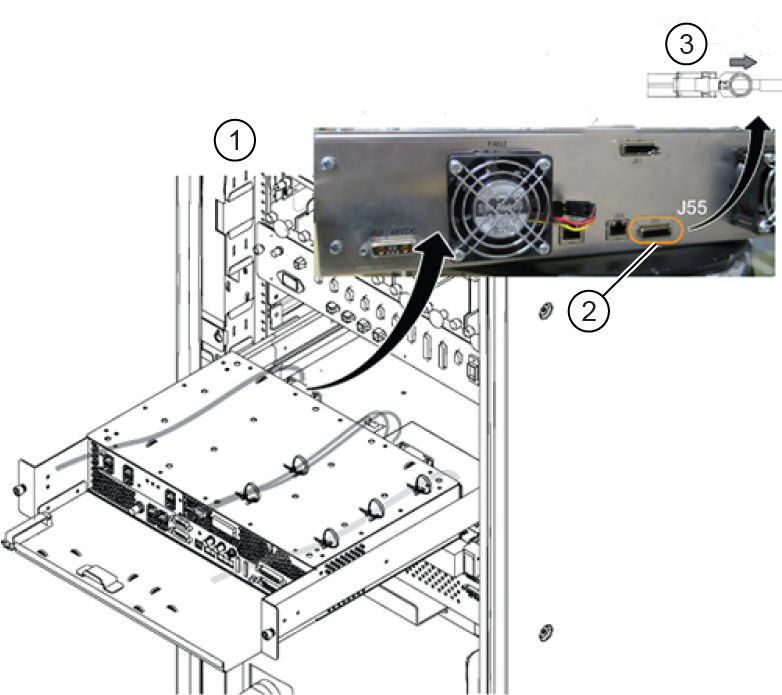 Disconnect the PCIe cable (J55) from the ICE rear panel.