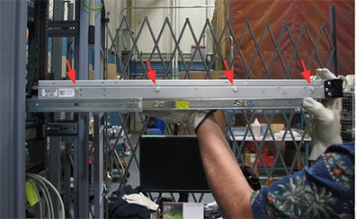 - Slide the ICN out of the cabinet until the ends of the rails touch the stoppers.