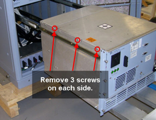 Because of its weight, removing the SRPS from the PEN cabinet requires you to use the hoist service tool. The hoist service tool allows one person to perform this procedure. This is the preferred method to avoid injury.