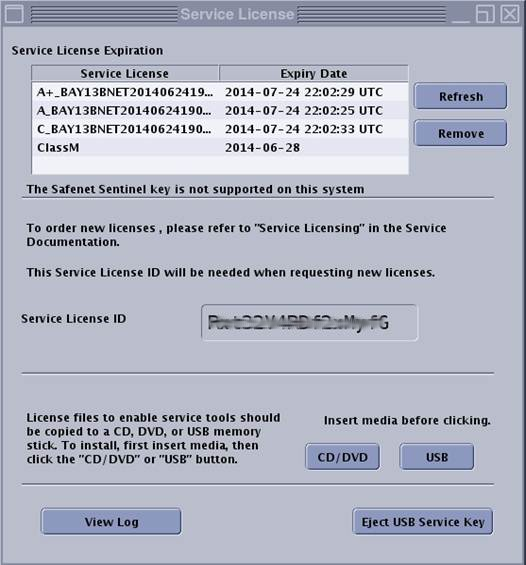 Select Install Service License. The Service License information window shows the service license ID.