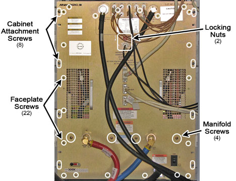- Unscrew the eight large screws that attach the XRFD to the cabinet,