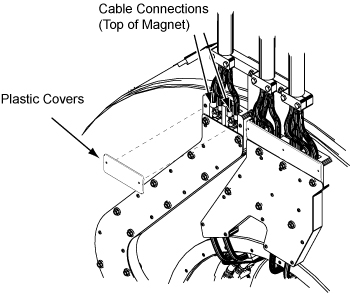 1. Remove the safety cover from the gradient leads by removing the nuts and G-10 (glass-reinforced) washers.