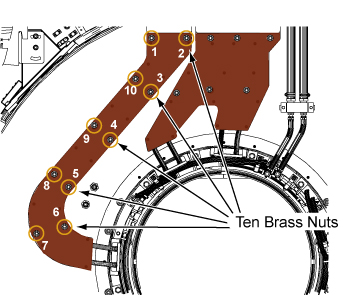 10. (For M10 nut/stud configuration) Do a second torque operation at each nut to confirm the proper torque of the nut.