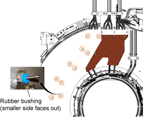 5. Remove the nuts and washers that secure the busbar to the gradient coil.