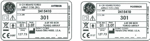 To identify the 3.0T HD 8-Channel Torso Coil, refer to the coil label (see the following illustrations).