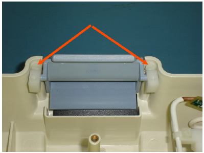 Insert two new pivot blocks (2382710, supplied in FRU kit) on the latch and mount the screws.