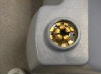 The four spring clip connectors are located in the head coil baseplate, under the plastic caps (marked A in the illustration below).