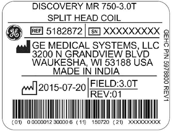To identify the 3.0T Split-Top Head Coil, refer to the coil label shown below.
