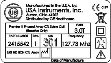 To identify the 3.0T HD 8-Channel CTL Coil, refer to the coil label (see the following illustrations).