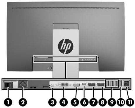 | 3 | Audio-out | Connects headphones or an optional HP Speaker Bar to the display. |