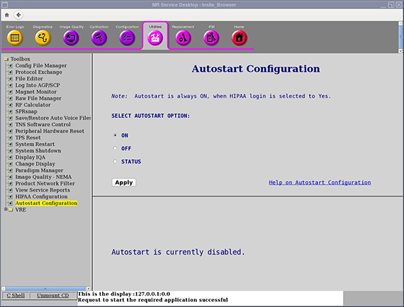 If Autostart is enabled, the system will automatically execute the Start button after 30 seconds. Autostart Configuration is available on the Common Service Desktop (CSD). You can also configure Autostart from the HIPAA/Security page in Guided Install.