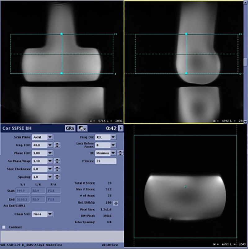 To show Ax/Sag/Cor coil coverage (coil extents), check Show Coil Extents from the GRx pull-down menu.