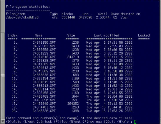 Selecting the test type from the list of available types results in the display shown in Figure 3. In this example the default test type SPT was selected. Help information is available for each of the listed commands by selecting H. See Figure 4.